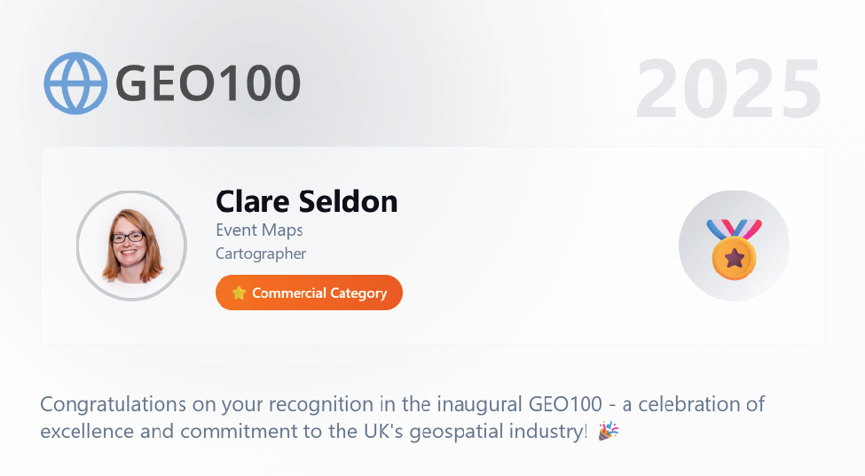 Paul Naylor, BCS President said “Clare’s dedication to the British Cartographic Society shines through every tweet, post, and story she shares. Her work on social media has not only elevated the visibility of BCS but has also created a vibrant, welcoming space for cartographers, map enthusiasts, and the wider geospatial community. Clare has a remarkable ability to distill complex ideas into engaging content, whether she’s promoting events like Tea Time Talks, celebrating member achievements, or spotlighting innovative mapping projects. Her tone is always inclusive and encouraging, helping to foster a sense of belonging and pride among members. Through her creativity and consistency, Clare has grown our online presence, expanded our reach, and helped attract new audiences to the Society. She’s also instrumental in amplifying the voices of others, highlighting diverse perspectives and ensuring that BCS remains a dynamic and forward-thinking organisation. Clare’s work is more than just communication; it’s community-building. Her passion for cartography and her commitment to the Society’s mission are evident in everything she does. We’re incredibly fortunate to have her steering our digital storytelling and helping shape the future of BCS.”