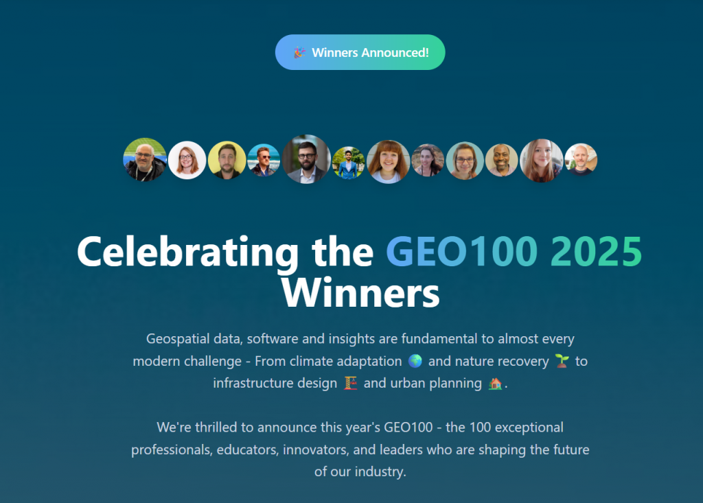 The judges announced their selected inaugral GEO100 for 2025 on GIS day November 19th 2025.